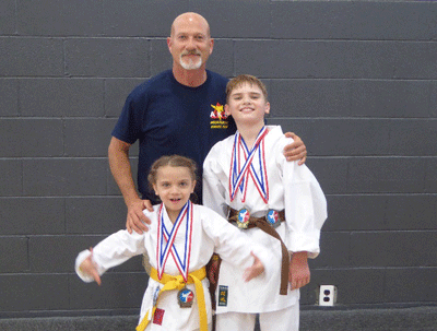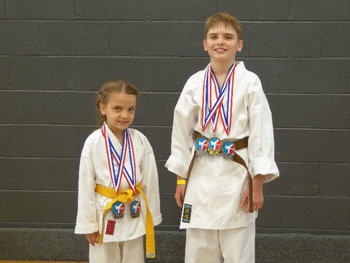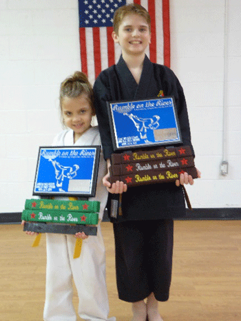 This spring, several members from the Mountaineer Karate Club became interested in participating in local tournaments. On April 25, 2015, Ethan Galicic II and his sister Savannah entered their first tournament, "Rumble on the River" held in Grafton, West Virginia. This tournament had over 200 competitors and many from other states such as Pennsylvania, Virginia and North Carolina. Ethan placed 1st in Kata, 2nd in Weapons, and 3rd in Sparring. Savannah placed 1st in Sparring and 4th in Kata. She did not compete in weapons. Savannah was also asked to participate in a non-competitive demo match with a young lady in the next oldest age group.
