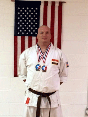 John Billie, also from Mountaineer Karate Club, had been practicing for this competition but badly injured his elbow at work. Mr. Billie is a police officer for the City of Shinnston, West Virginia. However, even with his injury, he decided to compete in Kata and Weapons. John, with a bandaged up arm, still placed 2nd in Kata and 3rd in Weapons. I believe this is the attitude and spirit that Mr. Lieb wanted to instill in all the AKS.